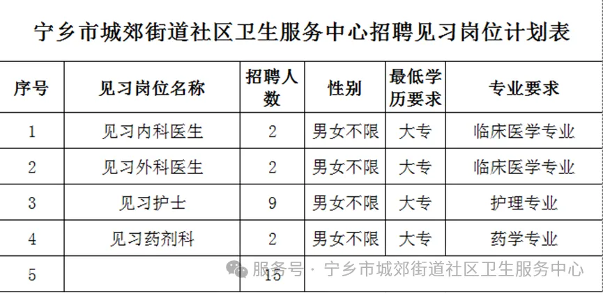 原文标题:宁乡市城郊街道社区卫生服务中心公开招聘就业见习人员公告