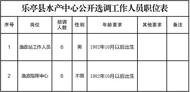 原文标题:12名!乐亭县水产中心公开选调工作人员
