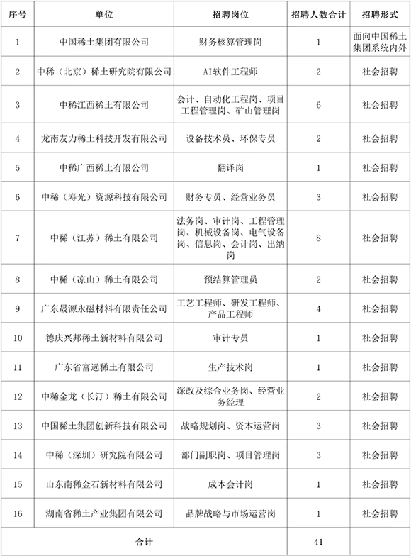原文标题:中国稀土集团有限公司及所属企业招聘公告