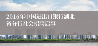 公务员考试网为各位考生带来:2016年中国进出口银行湖北省分行社会招聘启事。 考生还可以关注本栏目了解更多湖北国家公务员考试精彩内容。
