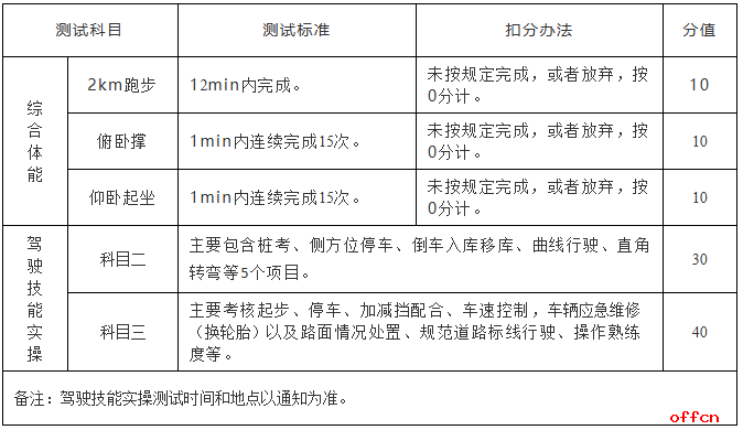 每个科目实行量化评分,并对个人综合得分进行量化排名,体能科目得分低于20分的或者总分低于80分,直接淘汰。