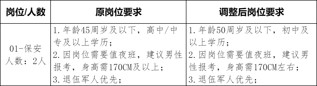 原文标题:关于吉水县城控人力资源服务有限公司2025年面向社会公开招聘2名保安重启报名、调整岗位要求及考试方式的公告