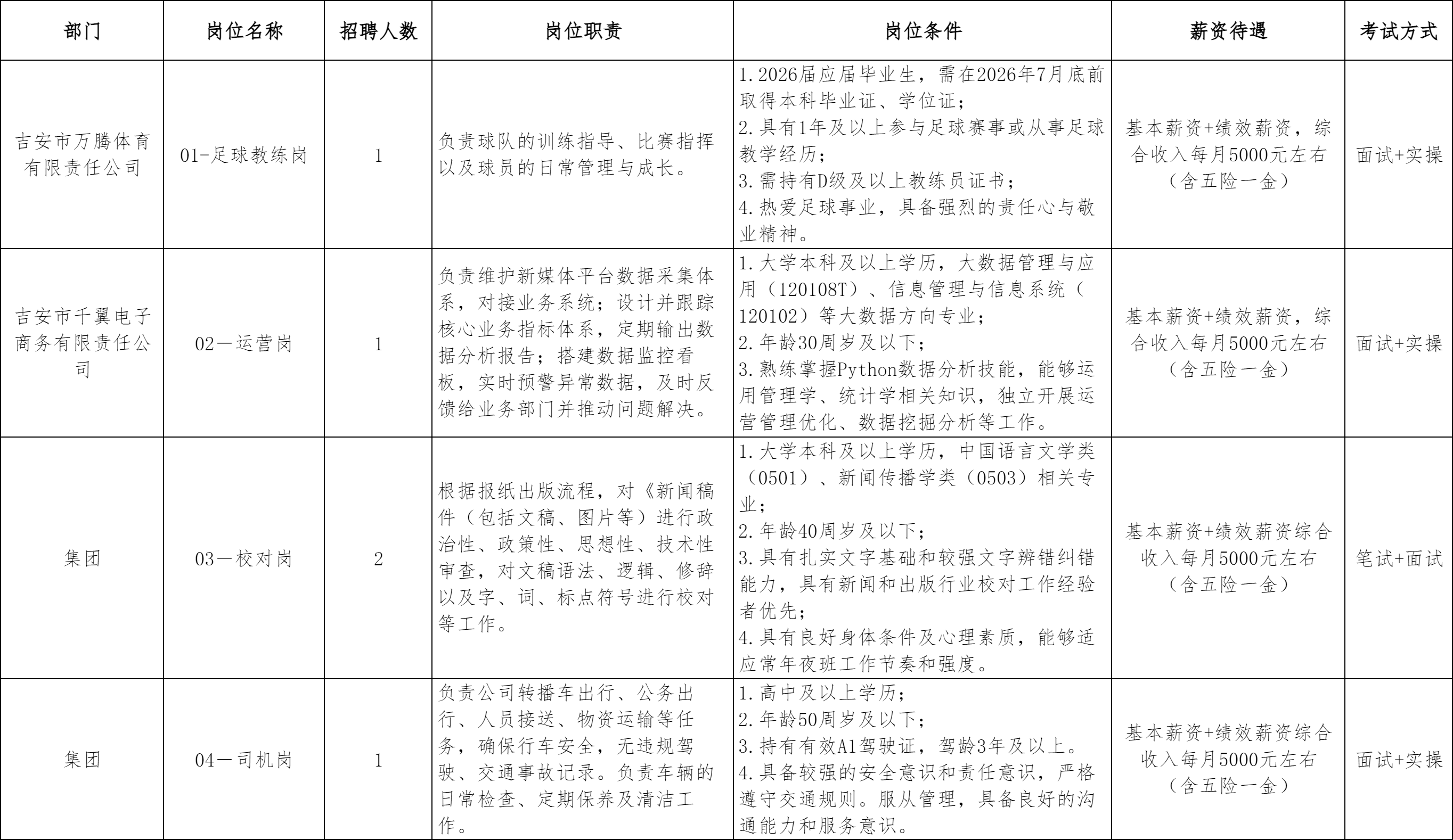 附件:《吉安市文化传媒集团有限责任公司2025年公开招聘劳务派遣工作人员岗位要求》