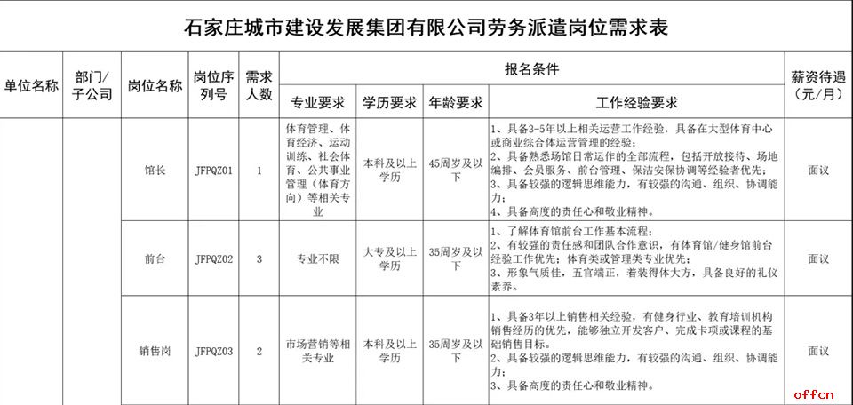 原文标题:【招聘】石家庄城市建设发展集团有限公司劳务派遣制人员招聘