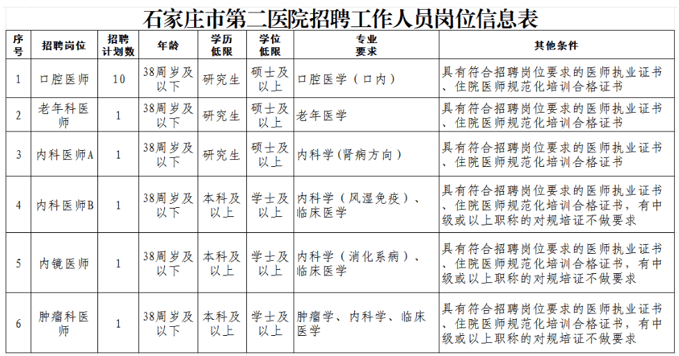 原文标题:石家庄市第二医院关于补招工作人员的通知