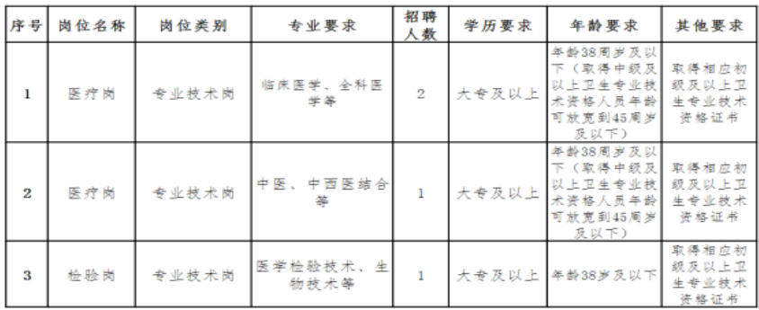 根据我院业务发展和人才队伍建设需要,现向社区公开招聘编外医疗岗人员3名、检验岗1名。具体招聘细则如下: