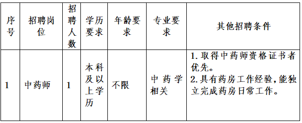 此次面向社会公开招聘中药师1人,共计1人。