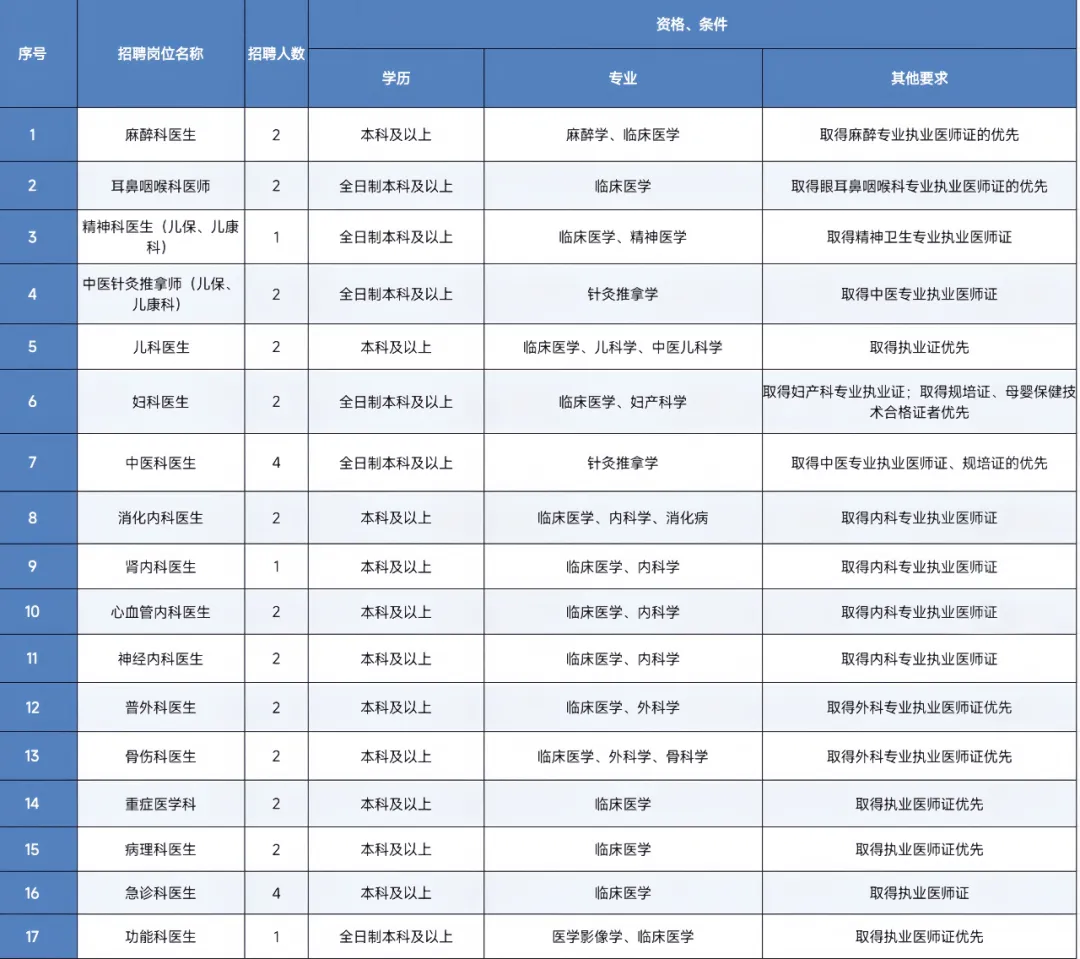 1.全日制本科及以上学历,具有执业医师资格证、执业医师执业证和住院医师培训合格证,医院给予安家费6万元。