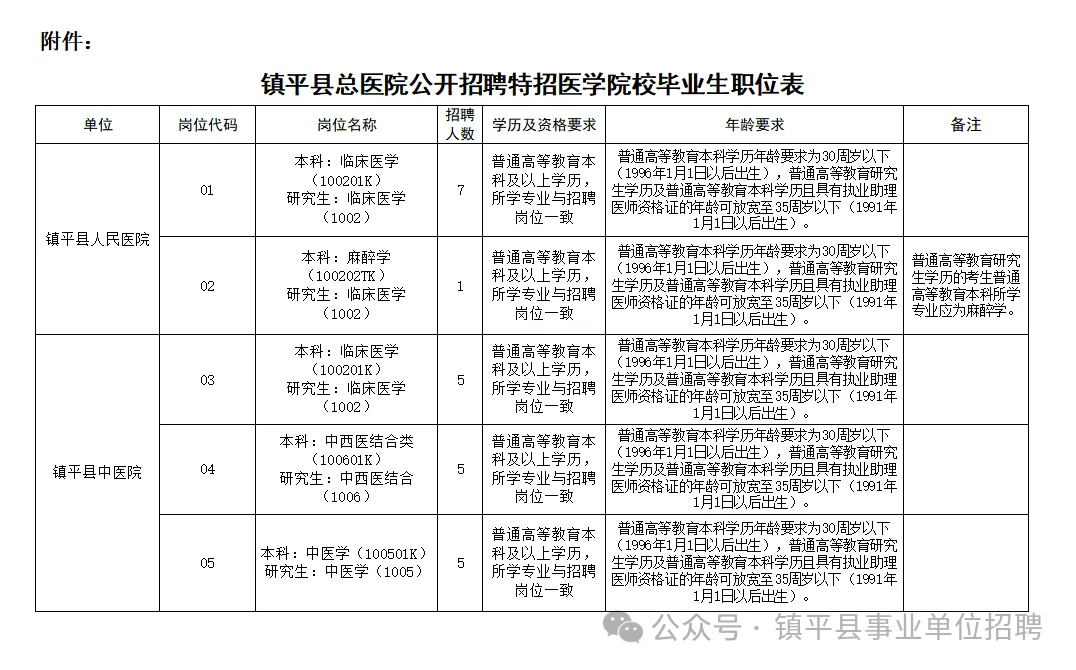 附件:镇平县总医院公开招聘特招医学院校毕业生职位表