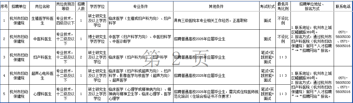 原文标题:2026年上半年杭州市妇产科医院(杭州市妇幼保健院)高层次、紧缺专业人才招聘公告(总公告)
