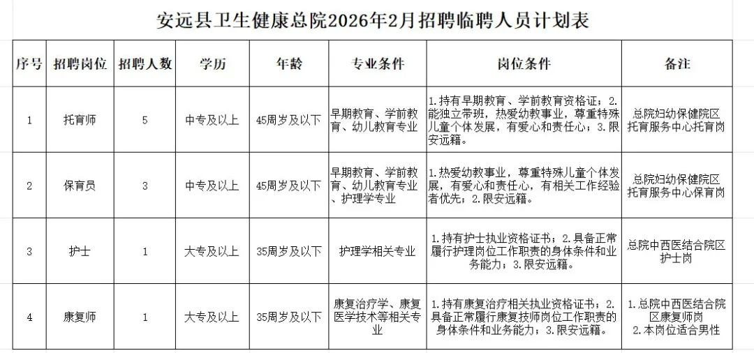 原文标题:安远县卫生健康总院面向社会公开招聘临聘人员公告
