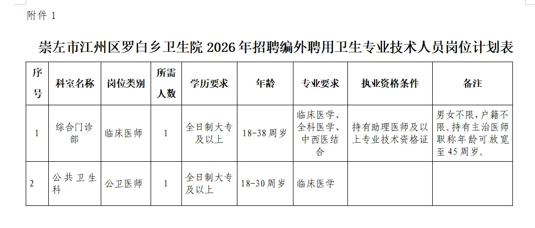 原文标题:崇左市江州区罗白乡卫生院招聘公告