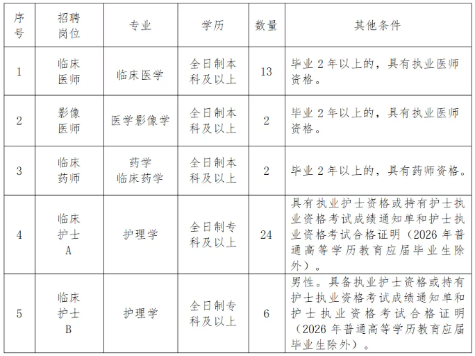 5、具有招聘岗位要求的学历、专业和技能条件(详见《围场县医院2026年公开招聘卫生专业技术人员岗位信息表》)。
