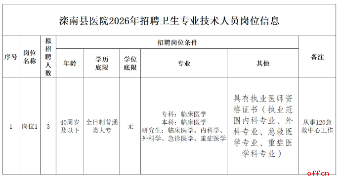 公务员考试网为各位考生带来:2026河北唐山滦南县医院招聘合同制专业技术人员3名公告。 考生还可以关注本栏目了解更多河北医院招聘考试精彩内容。