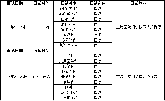 公务员考试网为各位考生带来:2026天津医科大学总医院空港医院代理制岗位招聘面试安排。 考生还可以关注本栏目了解更多天津医院招聘考试精彩内容。