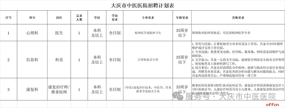公务员考试网为各位考生带来:2026年大庆市中医医院招聘3人公告。 考生还可以关注本栏目了解更多全国医院招聘考试精彩内容。