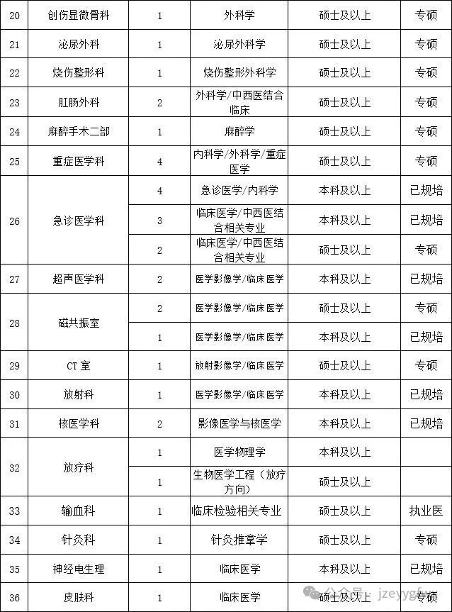 备注:具有各专业规培证的本科生享受“两个同等对待”。上述招聘学历要求均为普通高等教育本科及以上学历并取得相应学位。