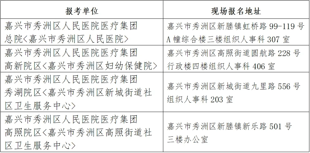 0573-89976820(嘉兴市秀洲区人民医院医疗集团高新院区<嘉兴市秀洲区妇幼保健院>组织人事科)