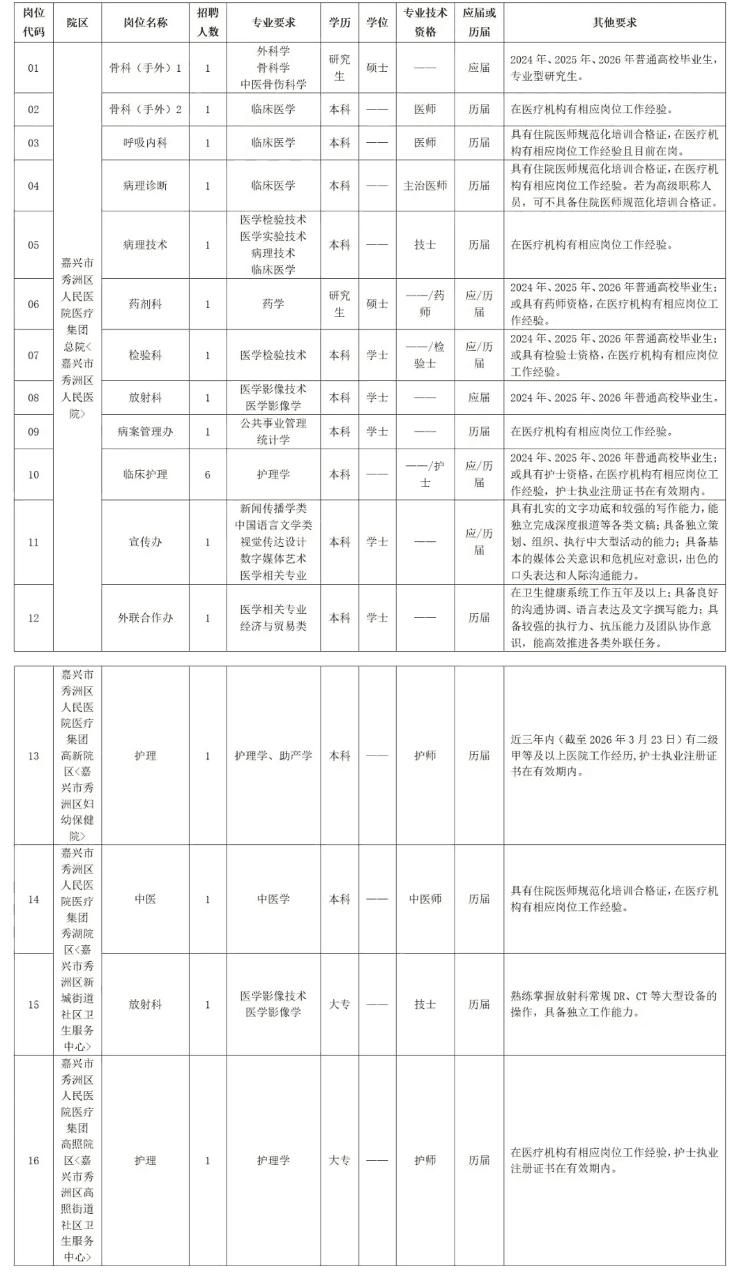 公务员考试网为各位考生带来:2026年嘉兴市秀洲区人民医院医疗集团招聘编外合同制人员21人公告。 考生还可以关注本栏目了解更多全国医院招聘考试精彩内容。