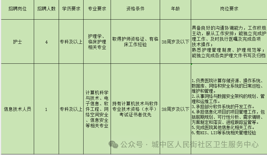 原文标题:城中区人民街社区卫生服务中心面向社会公开招聘