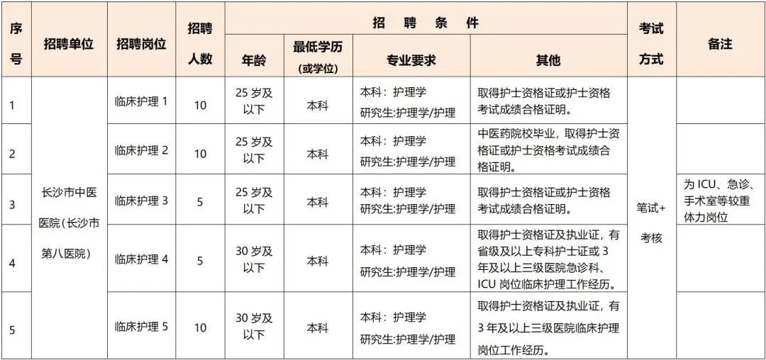 原文标题:长沙市中医医院(长沙市第八医院)公开招聘聘用制护理人员简章