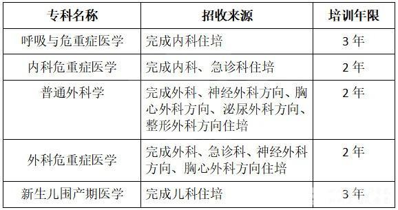 1.完成住院医师规范化培训(以下简称住培)、取得合格证书并自愿参加专培的临床医师,申报专科应与住培专业来源一致。申报的培训专科与住培专业来源的对应要求见下表。