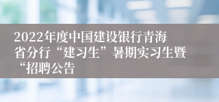 公务员考试网为各位考生带来:2022年度中国建设银行青海省分行“建习生”暑期实习生暨“招聘公告。 考生还可以关注本栏目了解更多青海银行招聘考试精彩内容。