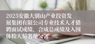 2025安徽大别山产业投资发展集团有限公司专业技术人才猎聘面试成绩、合成总成绩及入围体检人员名单公告