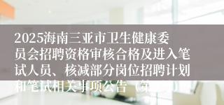 2025海南三亚市卫生健康委员会招聘资格审核合格及进入笔试人员、核减部分岗位招聘计划和笔试相关事项公告(第2号)