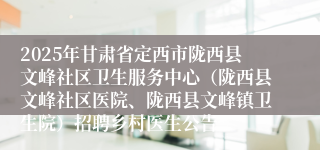 2025年甘肃省定西市陇西县文峰社区卫生服务中心(陇西县文峰社区医院、陇西县文峰镇卫生院)招聘乡村医生公告