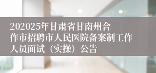 202025年甘肃省甘南州合作市招聘市人民医院备案制工作人员面试(实操)公告