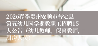 2026春季贵州安顺市普定县第五幼儿园学期教职工招聘15人公告(幼儿教师,保育教师,厨房人员)