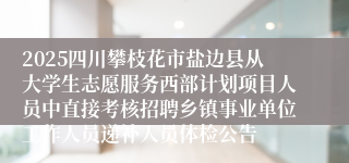 2025四川攀枝花市盐边县从大学生志愿服务西部计划项目人员中直接考核招聘乡镇事业单位工作人员递补人员体检公告
