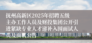 抚州高新区2025年招聘五级主办工作人员及财投集团公开引进紧缺专业人才递补入围面试人员及面试公告