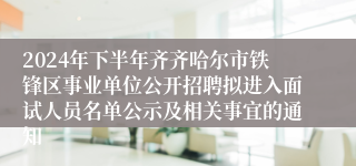 原文标题:齐齐哈尔市铁锋区2024年下半年事业单位公开招聘拟进入面试人员名单公示及相关事宜的通知