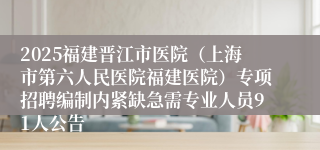 2025年晋江市医院(上海市第六人民医院福建医院)专项公开招聘编制内紧缺急需专业工作人员岗位信息表