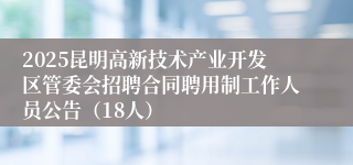 此次公开招聘18名合同聘用制工作人员,招聘岗位详见《昆明高新技术产业开发区管委会2025年公开招聘合同聘用制工作人员岗位计划表》(附件1)。