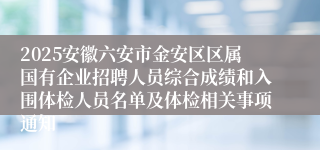 原文标题:关于公布六安市金安区区属国有企业公开招聘人员综合成绩和入围体检人员名单及体检相关事项的通知