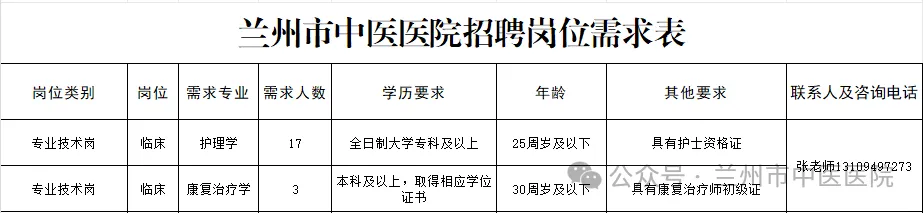 公务员考试网为各位考生带来:2025年甘肃省兰州市中医医院编外人员招聘20人公告。 考生还可以关注本栏目了解更多甘肃医院招聘考试精彩内容。