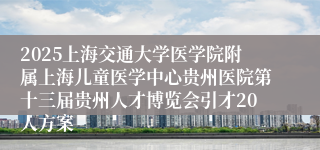 公务员考试网为各位考生带来:2025上海交通大学医学院附属上海儿童医学中心贵州医院第十三届贵州人才博览会引才20人方案。 考生还可以关注本栏目了解更多上海医院招聘考试精彩内容。