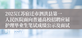 公务员考试网为各位考生带来:2025江苏宿迁市泗洪县第一人民医院面向普通高校招聘应届护理毕业生笔试成绩公示及面试时间公告。 考生还可以关注本栏目了解更多江苏医院招聘考试精彩内容。