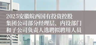 安徽皖西国有投资控股集团公司2025年部分经理层、内设部门和子公司负责人选聘拟聘用人员名单