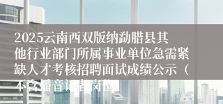 根据《云南省事业单位公开招聘工作人员办法》(云人社发〔2016〕182号)和《勐腊县2025年事业单位急需紧缺人才考核招聘公告》等有关规定,现将勐腊县2025年其他行业部门所属事业单位急需紧缺人才考核招聘面试成绩(不含播音记者岗位)予以公示(详见附件)。