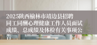 靖边县2025年公开招聘同工同酬心理健康工作人员面试工作已结束,按照总成绩与招聘岗位1:1的比例,现将进入面试人员的面试成绩、总成绩及进入体检人员予以公示(花名附后),并将有关事项通知如下: