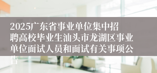 原文标题:广东省事业单位2025年集 开招聘高校毕业生汕头市龙湖区事业单位面试人员名单和面试有关事项的公告