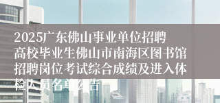原文标题:广东省事业单位2025年集 开招聘高校毕业生佛山市南海区图书馆招聘岗位考试综合成绩及进入体检人员名单公告