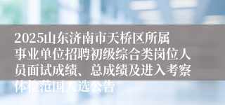 原文标题:关于2025年度济南市天桥区所属事业单位公开招聘初级综合类岗位人员面试成绩、总成绩及进入考察体检范围人选的公告