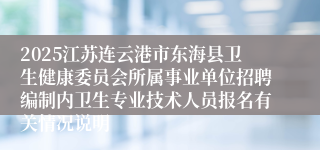 公务员考试网为各位考生带来:2025江苏连云港市东海县卫生健康委员会所属事业单位招聘编制内卫生专业技术人员报名有关情况说明。 考生还可以关注本栏目了解更多江苏医院招聘考试精彩内容。