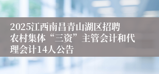 现因工作需要,经区政府研究决定,青山湖区面向社会公开招聘农村集体“三资”主管会计和代理会计共计14名,具体招聘事项如下: