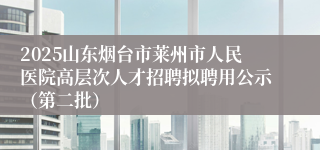 公务员考试网为各位考生带来:2025山东烟台市莱州市人民医院高层次人才招聘拟聘用公示(第二批)。 考生还可以关注本栏目了解更多山东医院招聘考试精彩内容。